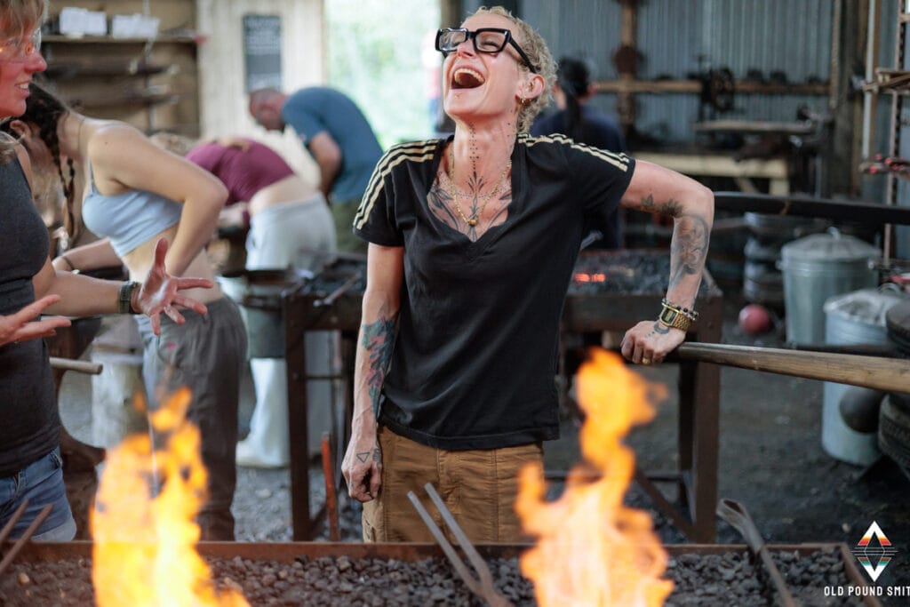 A teaching forge using fire, bellows, and hand tools — welcoming beginners of all kinds.